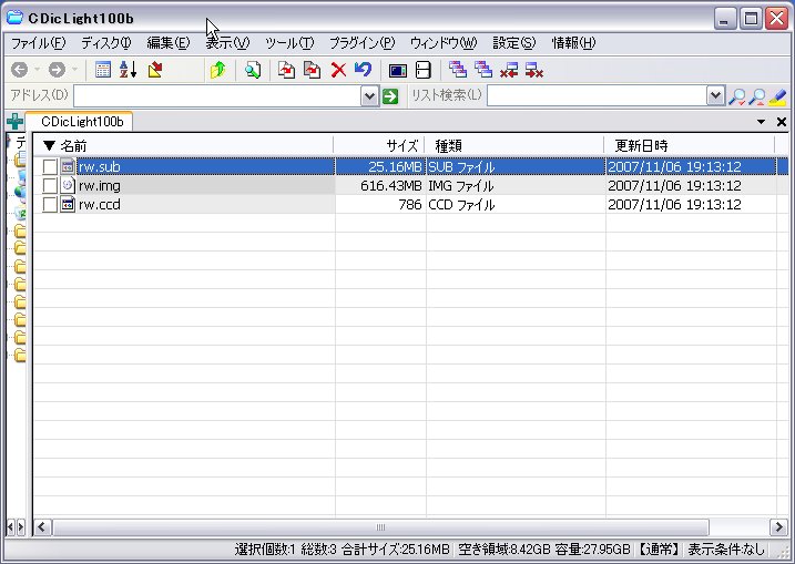 イメージファイルが作成でき、「ccd」「img」「sub」の三つのファイルで保存されます。