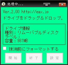 この画面にドライブをドラッグ&ドロップすることで削除するドライブの指定をすることができます。
