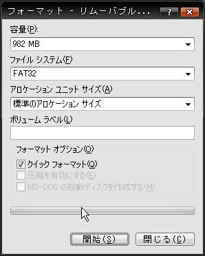 ちなみにチェックが入ったままで「開始」をクリックするとフォーマット画面が出ます。