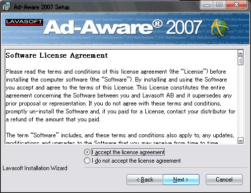 すべて英語表記なのでわかりにくいかもしれませんが、インストール&スパイウェアの駆除手順を紹介します。