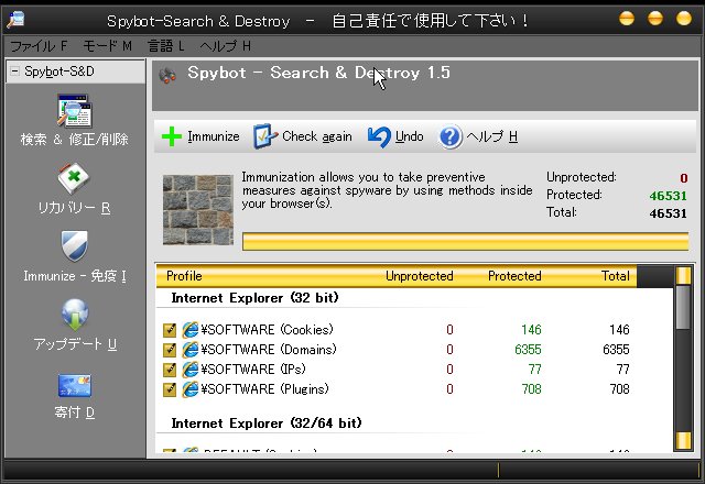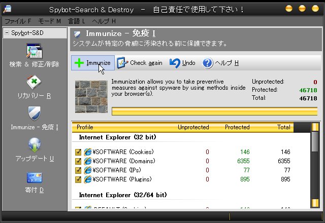 免疫化するとアップデートしたスパイウェア、もしくは、後でスパイウェアを検索・削除した後に削除されたスパイウェアにまた感染しないようにしてくれます。