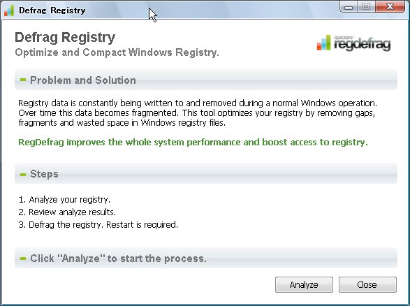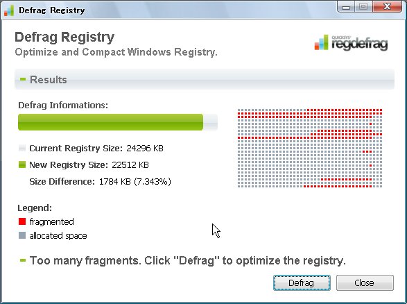 今日紹介するのはレジストリをデフラグするソフトです。レジストリも断片化するんですねぇ。