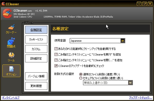 解析終了後、隣の「クリーンアップ開始」で解析したファイルを削除できます。