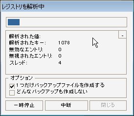 「ツール」→「レジストリクリーンアップ」→「それらを全て行う」とクリックするとレジストリの削除を開始します。