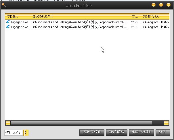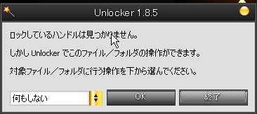 もし、そのファイルをロックしているプロセスが無い場合はこんな画面がでます。