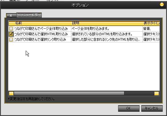 オプションではIEの右クリックメニューの拡張が出来ます。