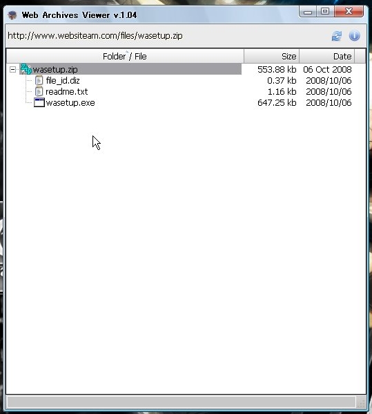 Web Archive Viewerが起動して圧縮ファイルの中身を表示します。