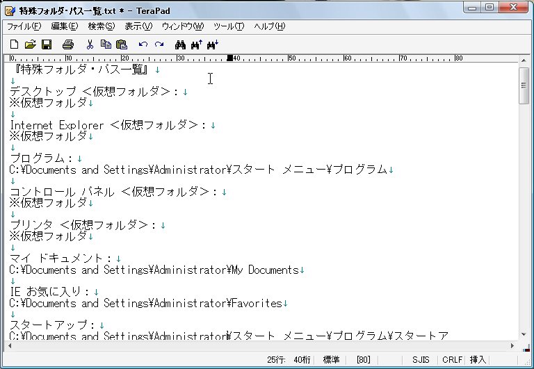 また、「パス一覧」をクリックすると特殊フォルダのパスが一覧表示されます。