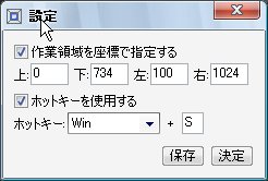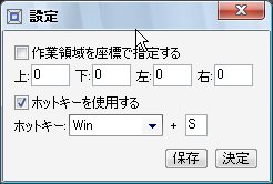 この画面で「作業領域を座標で・・・」にチェックを入れ、「絶対領域」を設定するのですが。。。