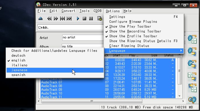 CDexの日本語化ランゲージファイル