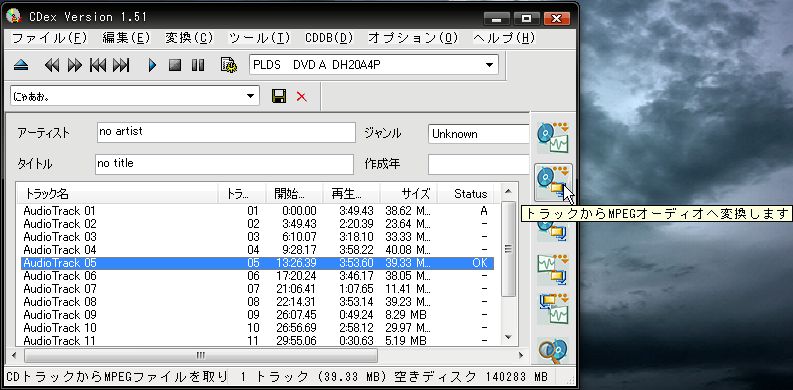では次にCDからmp3ファイルに変換する方法です。