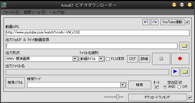 そしてソフトの「動画URL」欄にペースト。下にある欄で出力先を指定したら、下のほうにある赤丸をクリックすればDL出来ます。
