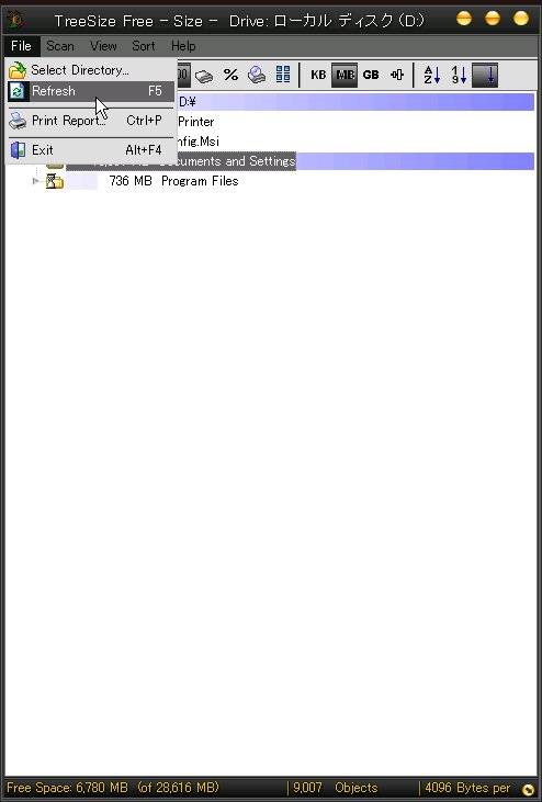 「File」→「Select Directory」から容量を確認したいフォルダまたはハードディスクを指定します。