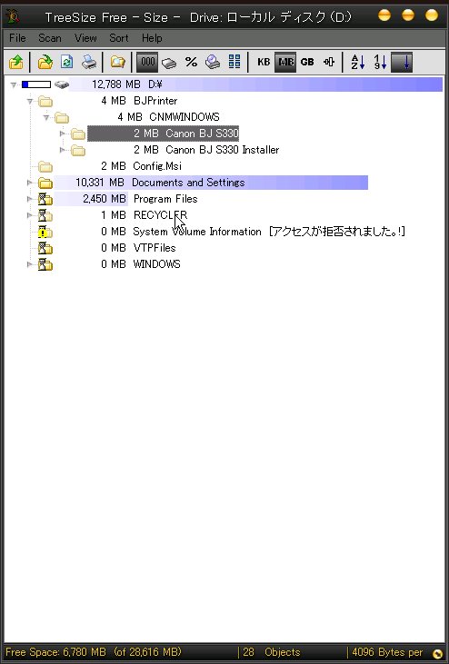 しばらくするとファイル一覧とともにそのフォルダの容量も表示されます。