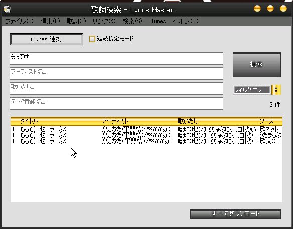 うたまっぷとかだとコピー禁止になってたりしていて歌詞を手に入れることが出来ませんが、このソフトを使うと簡単に歌詞を入手することが出来ます。