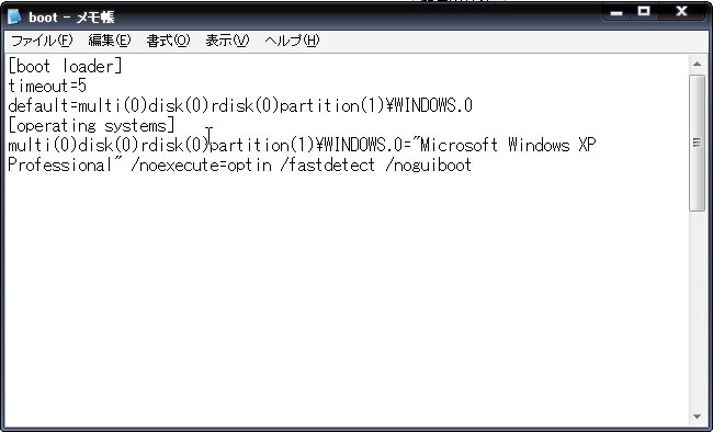 すると「boot.ini」というファイルがメモ帳等で表示されるので、「operating systems」と書かれている場所の末尾に「